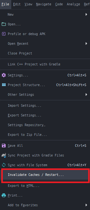 2. Android Studio Invalidate and Restart
